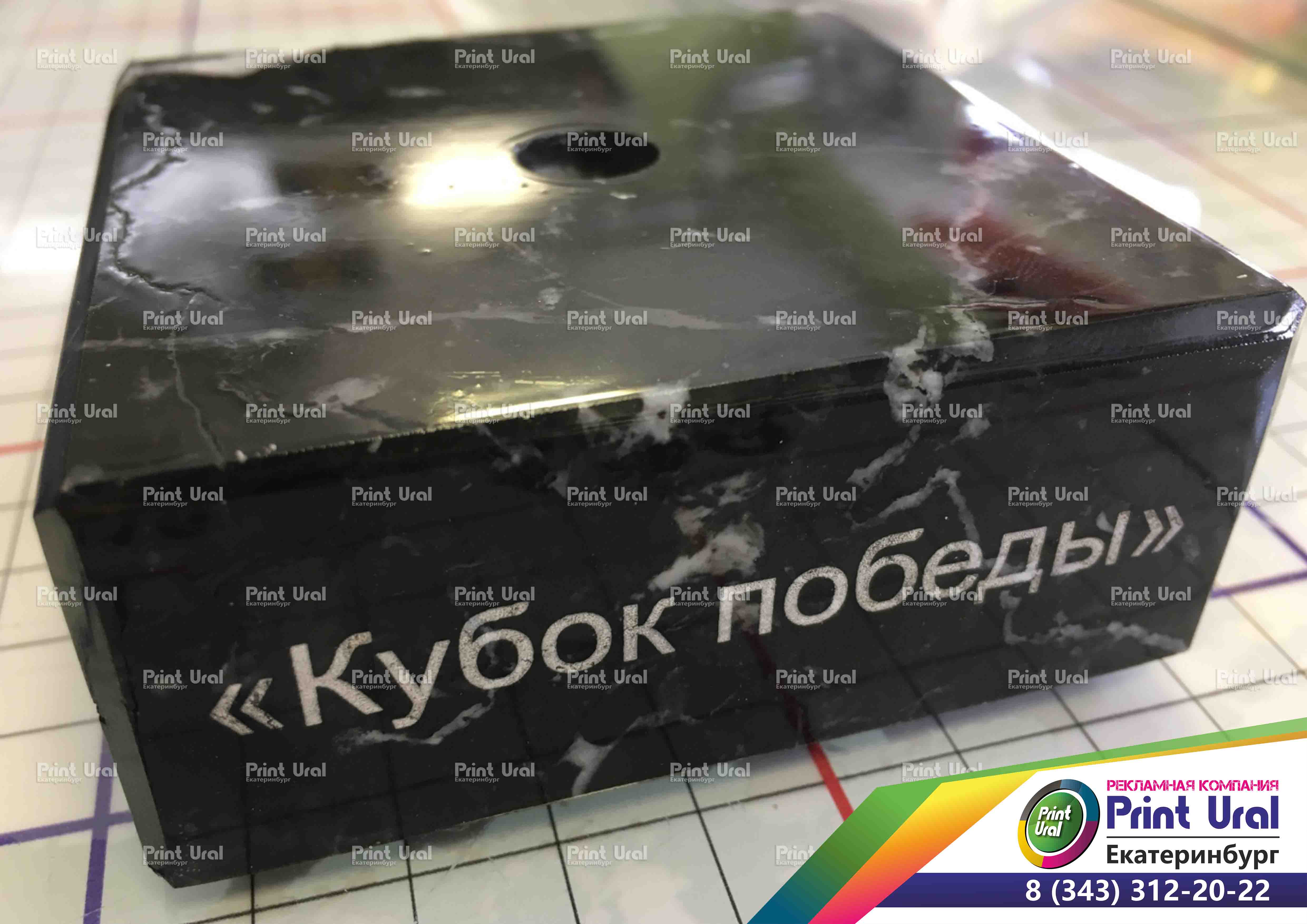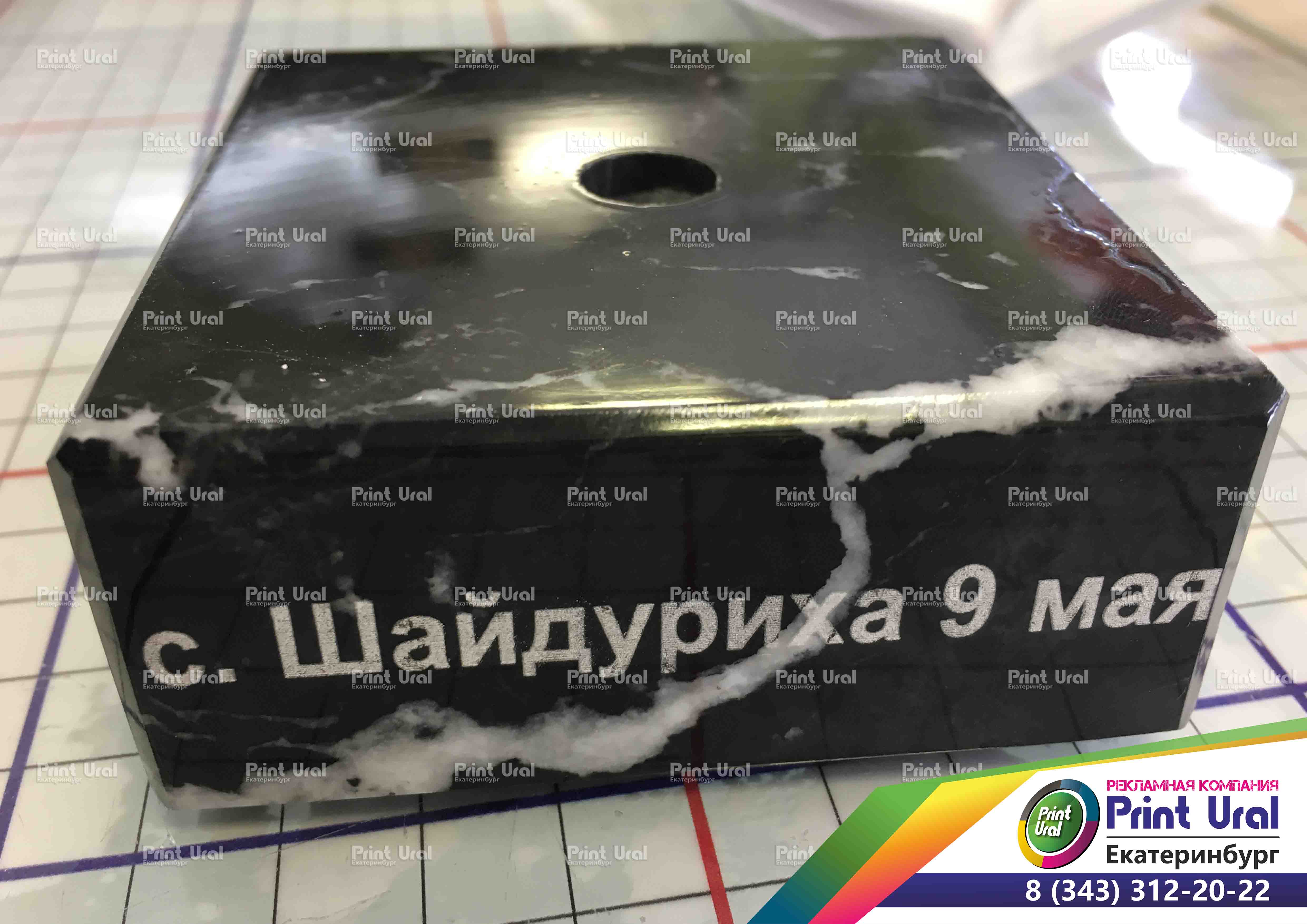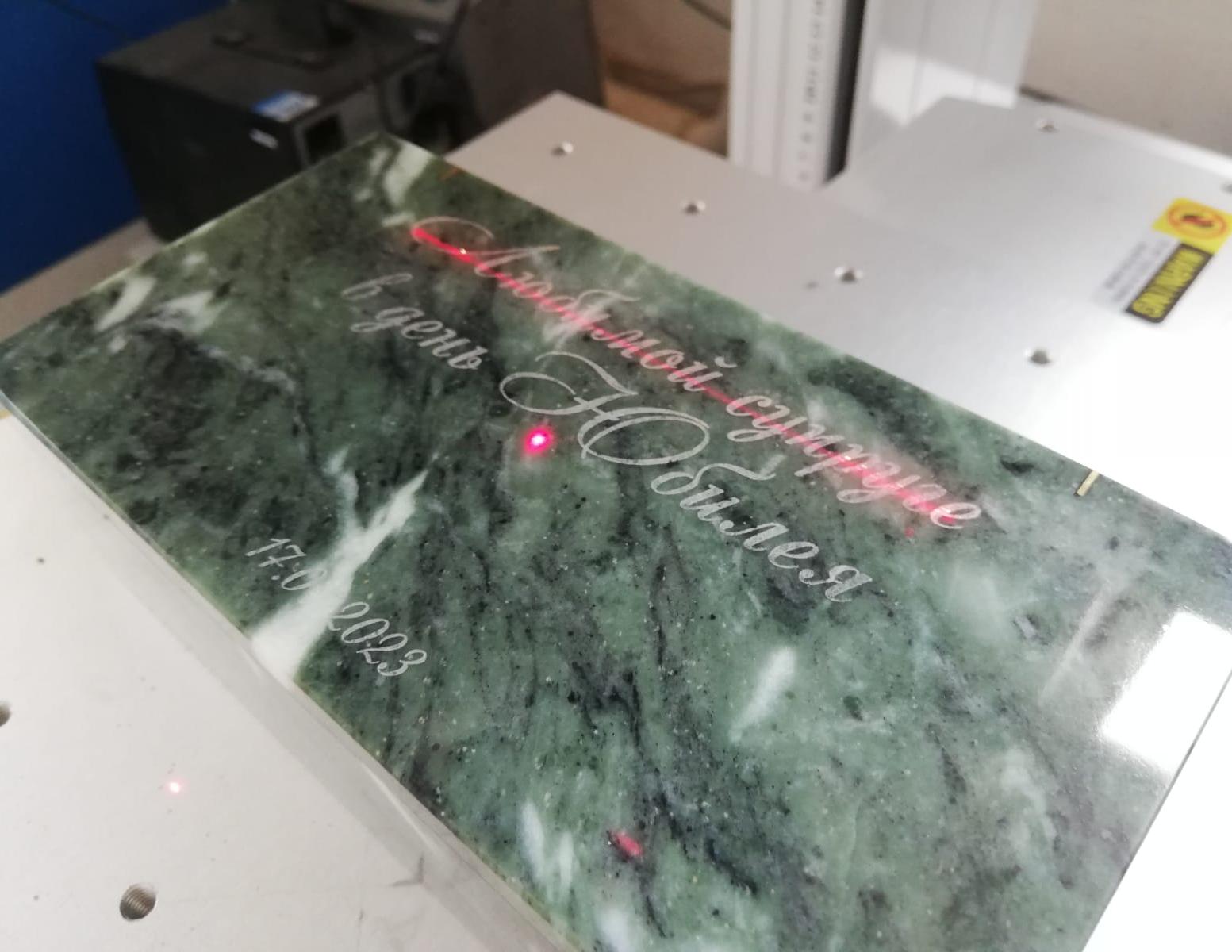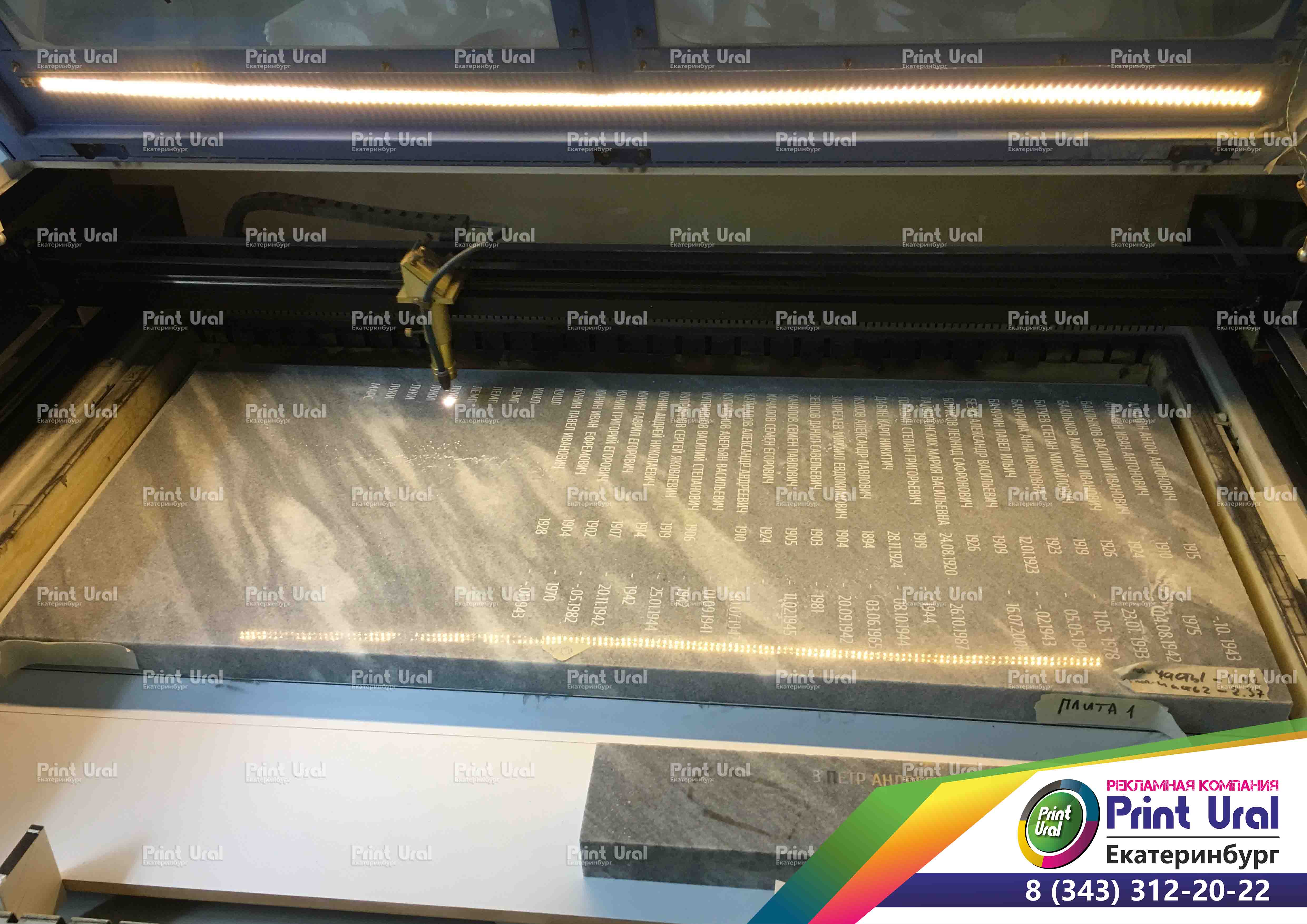 Гравировка лазером камня - этап быстрый, изображение получается качественное и четкое. В Print-Ural вы сможете заказать любой эскиз с надписью или изображением.
